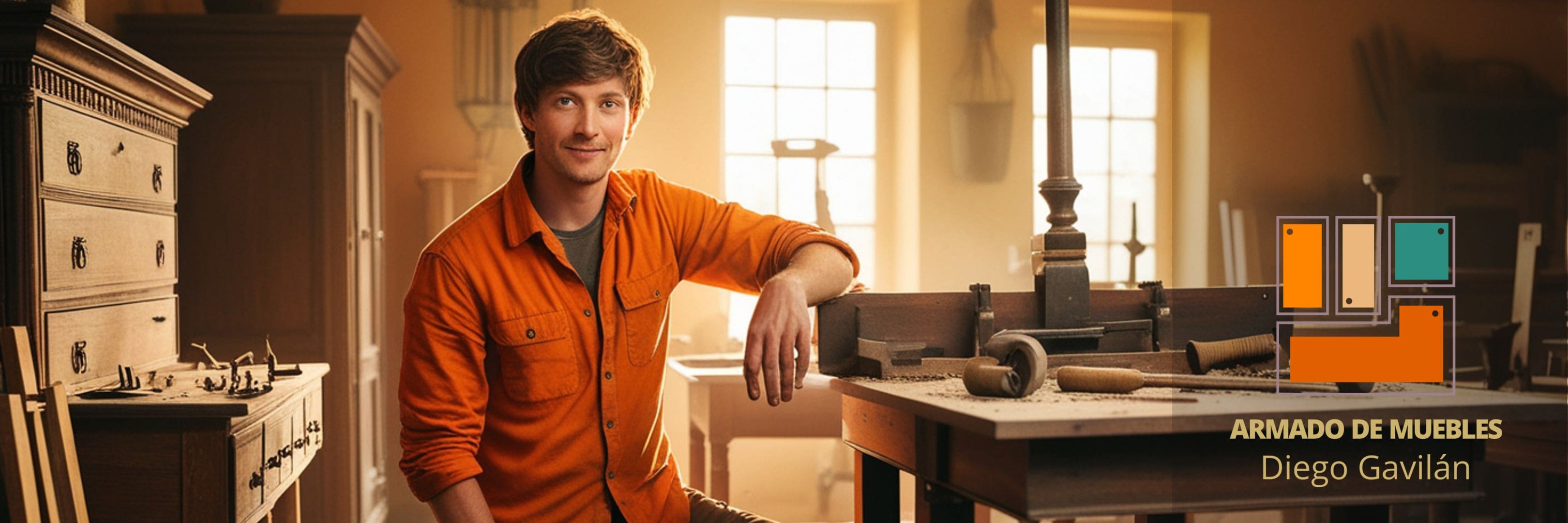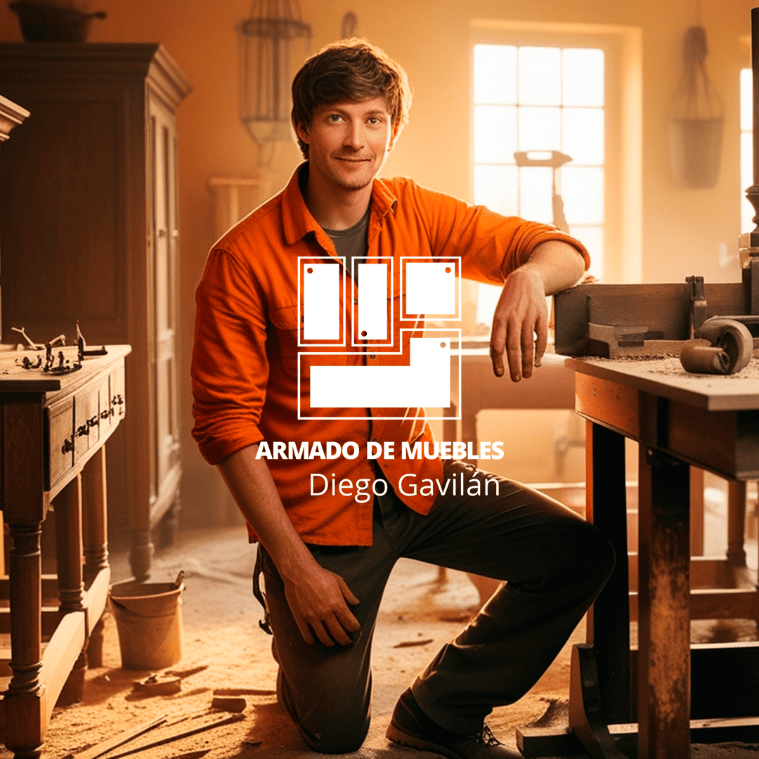 El texto está alineado debajo del icono y consta de dos líneas. La primera línea dice «ARMADO DE MUEBLES» en mayúsculas y la segunda línea «Diego Gavilán» en minúsculas.