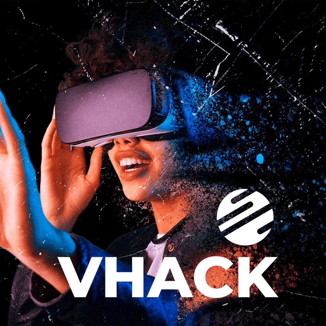 Así, el logo de "Vhack" no es solo una marca; es un emblema que invita a sumergirse en un cosmos de posibilidades ilimitadas, donde la realidad se entrelaza con la fantasía.
